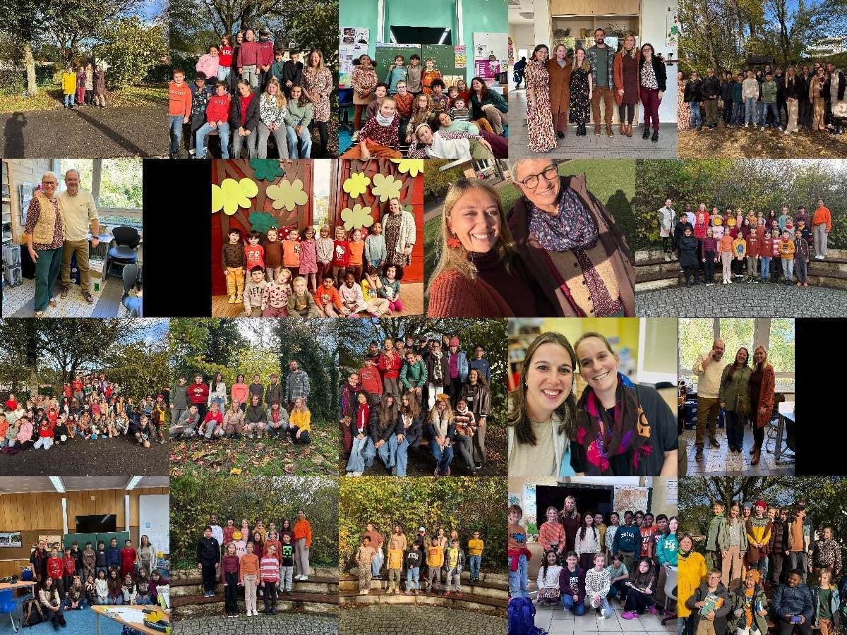 All d’Kanner, d’Schülerinnen an d’Schüler souwéi d’Personal sinn an de faarwege Kleeder vum Hierscht komm – vu gëllen a orange bis waarm brong Téin.